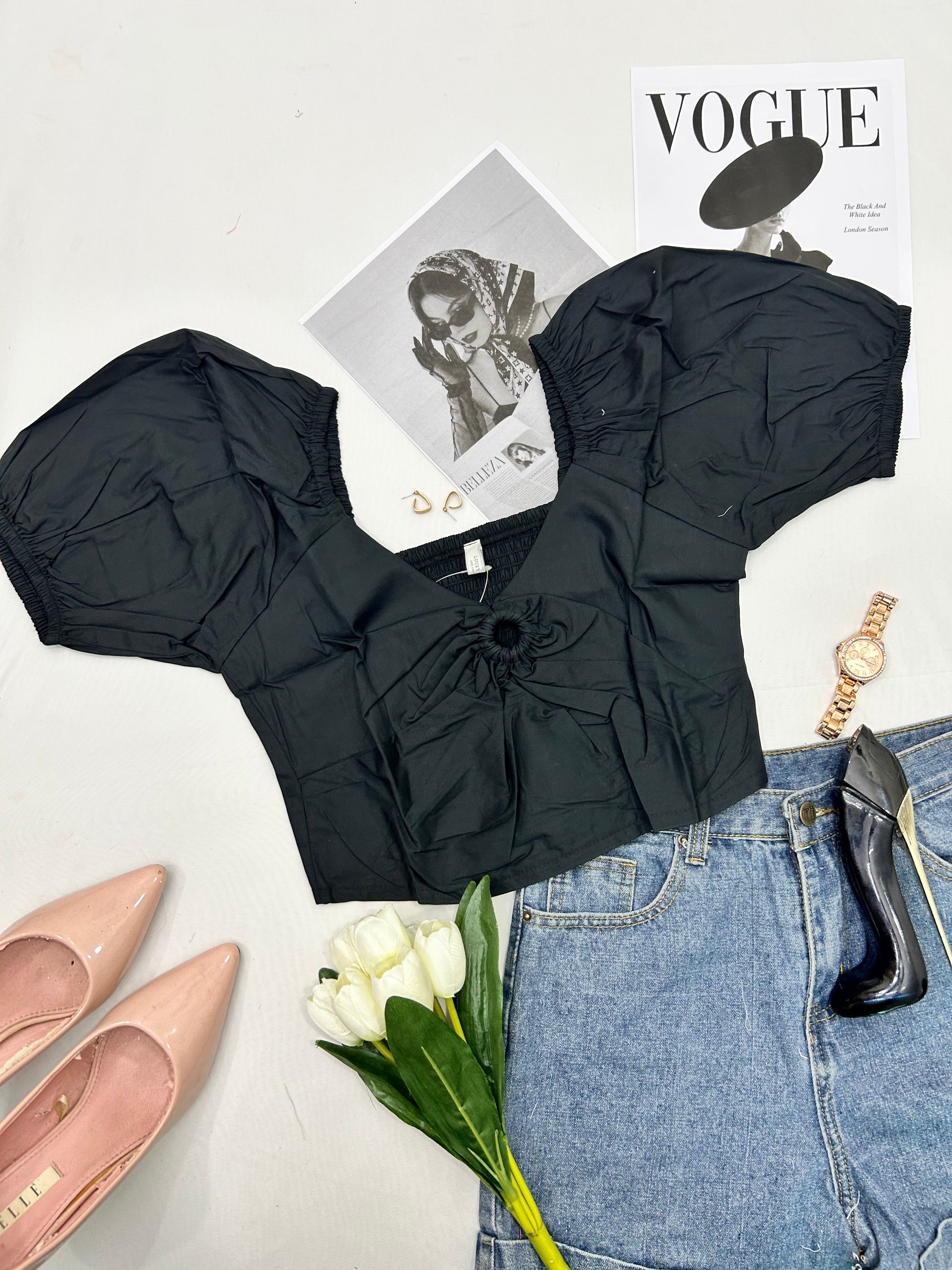 Bust : 30-36 ( has elastic ) Sleeve: Puff