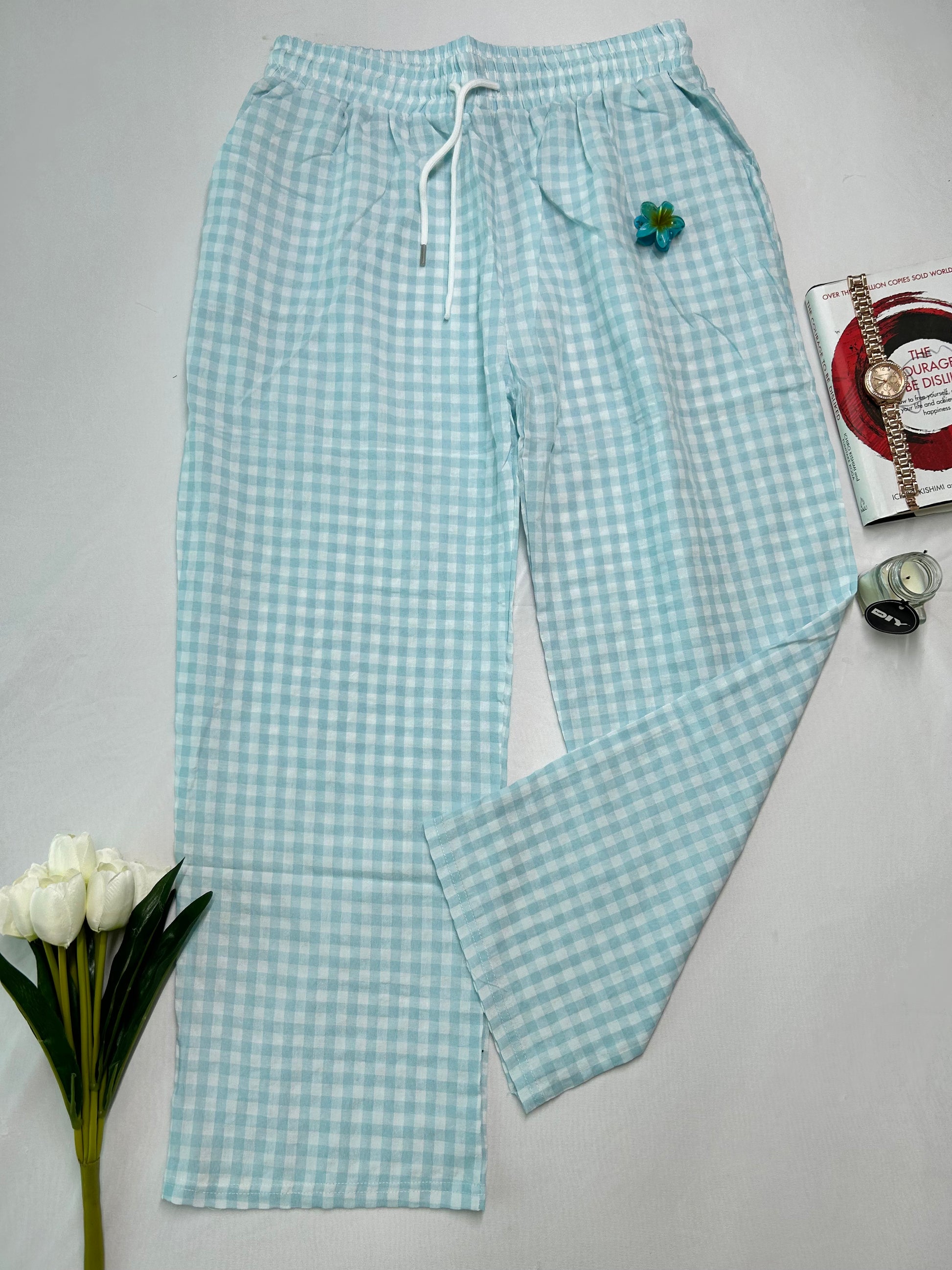 CHECKED PANTS - Sky blue