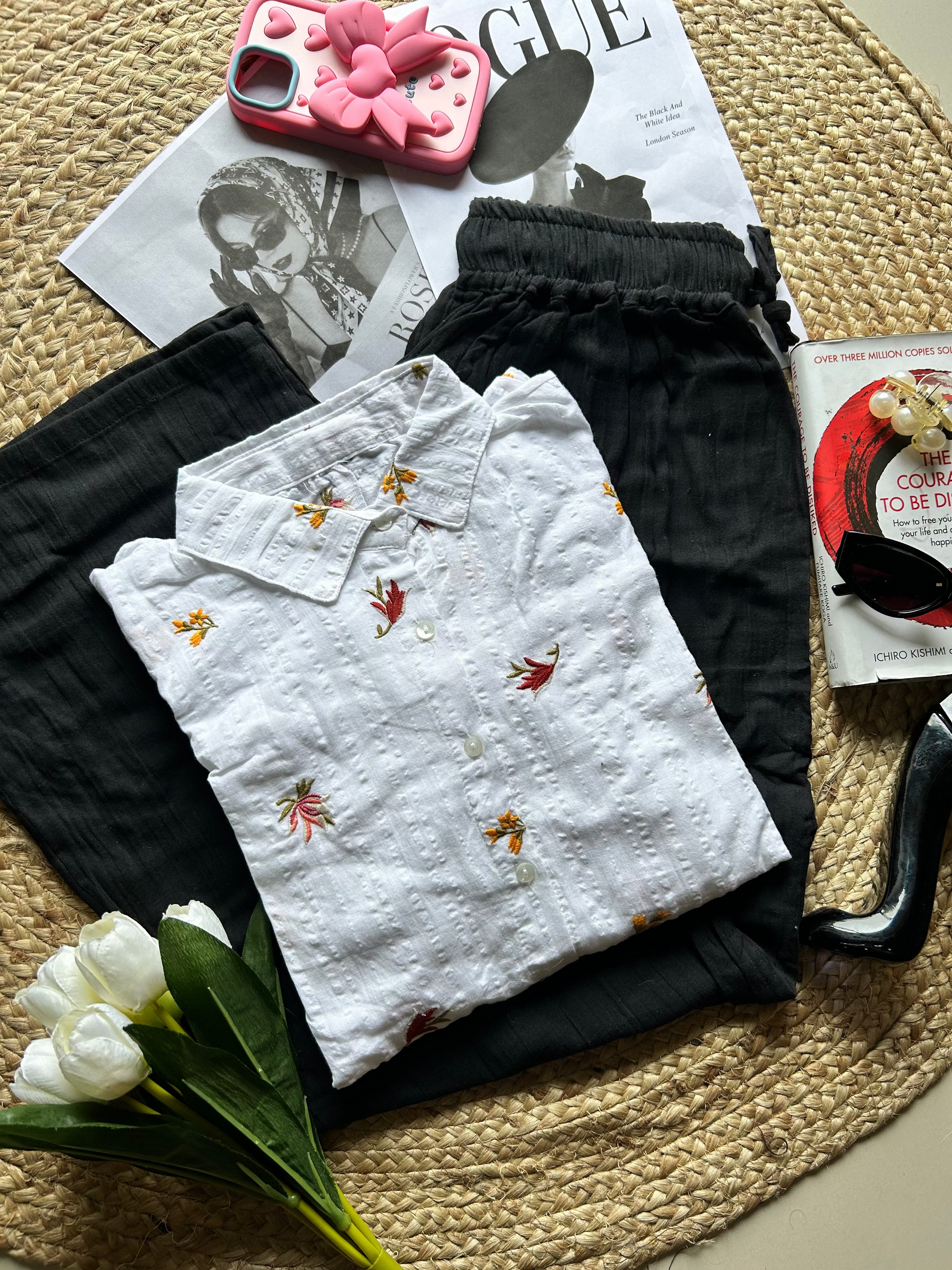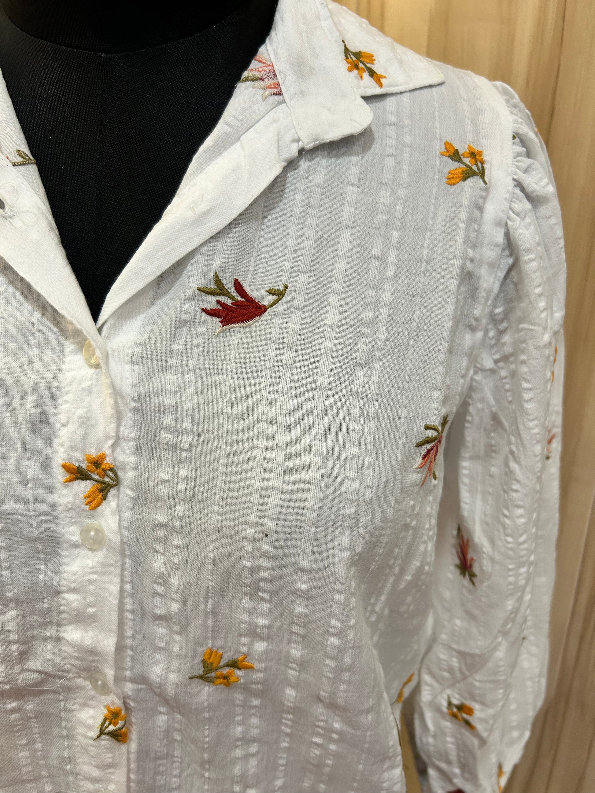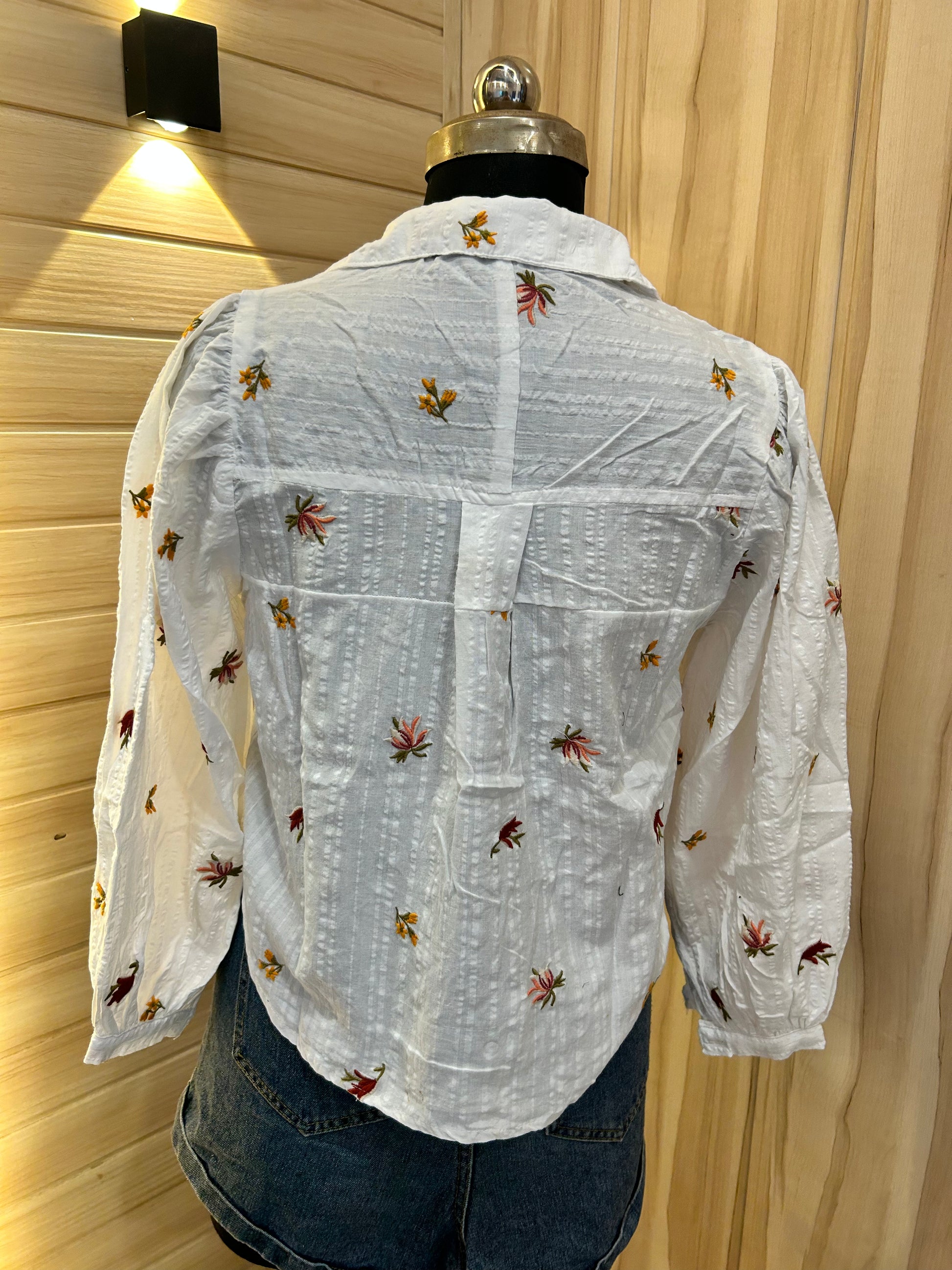 White floral embroidered shirts