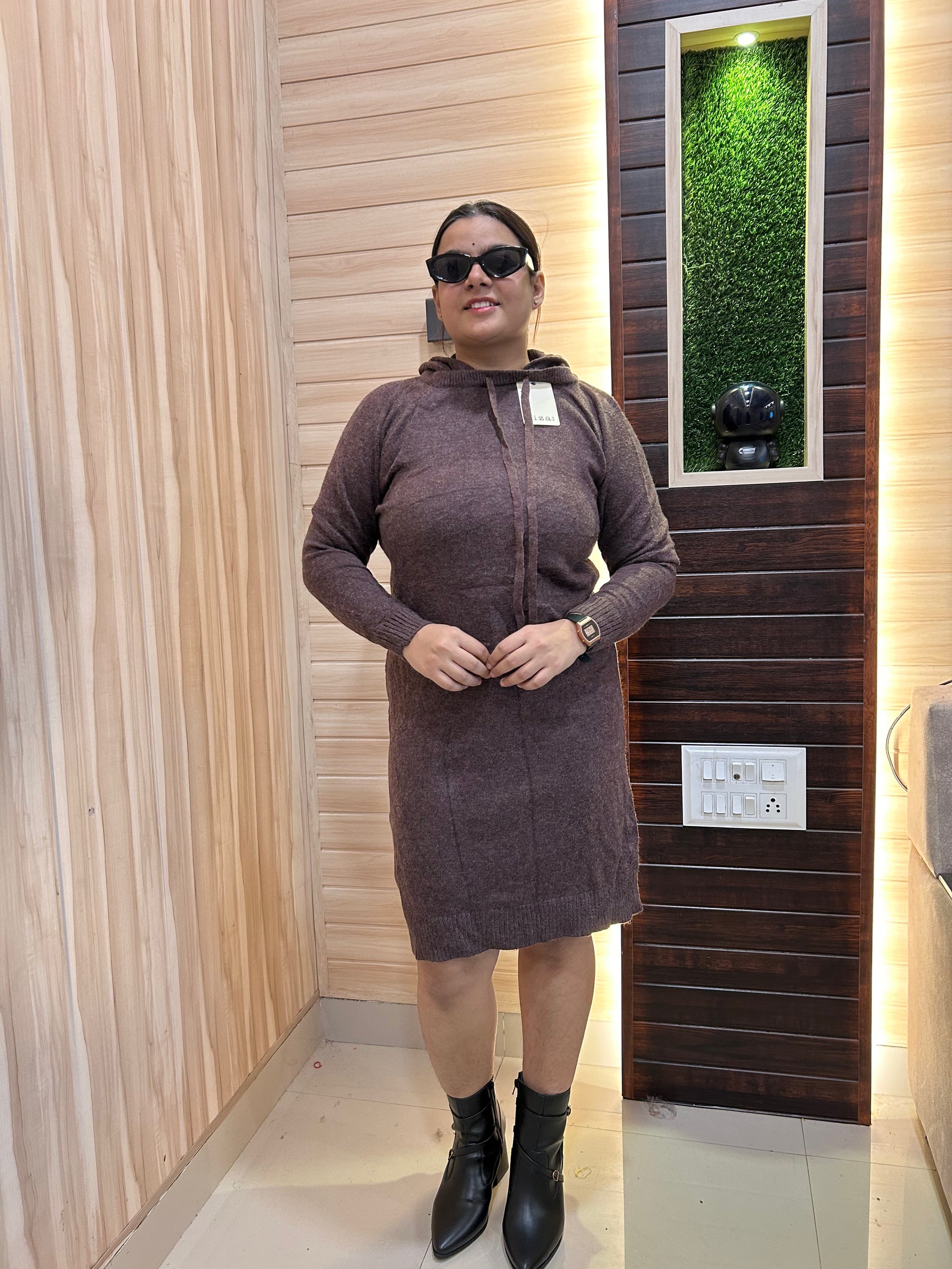 Brown Hoodie Dress for Women | Boho Freesize Surplus Dress
