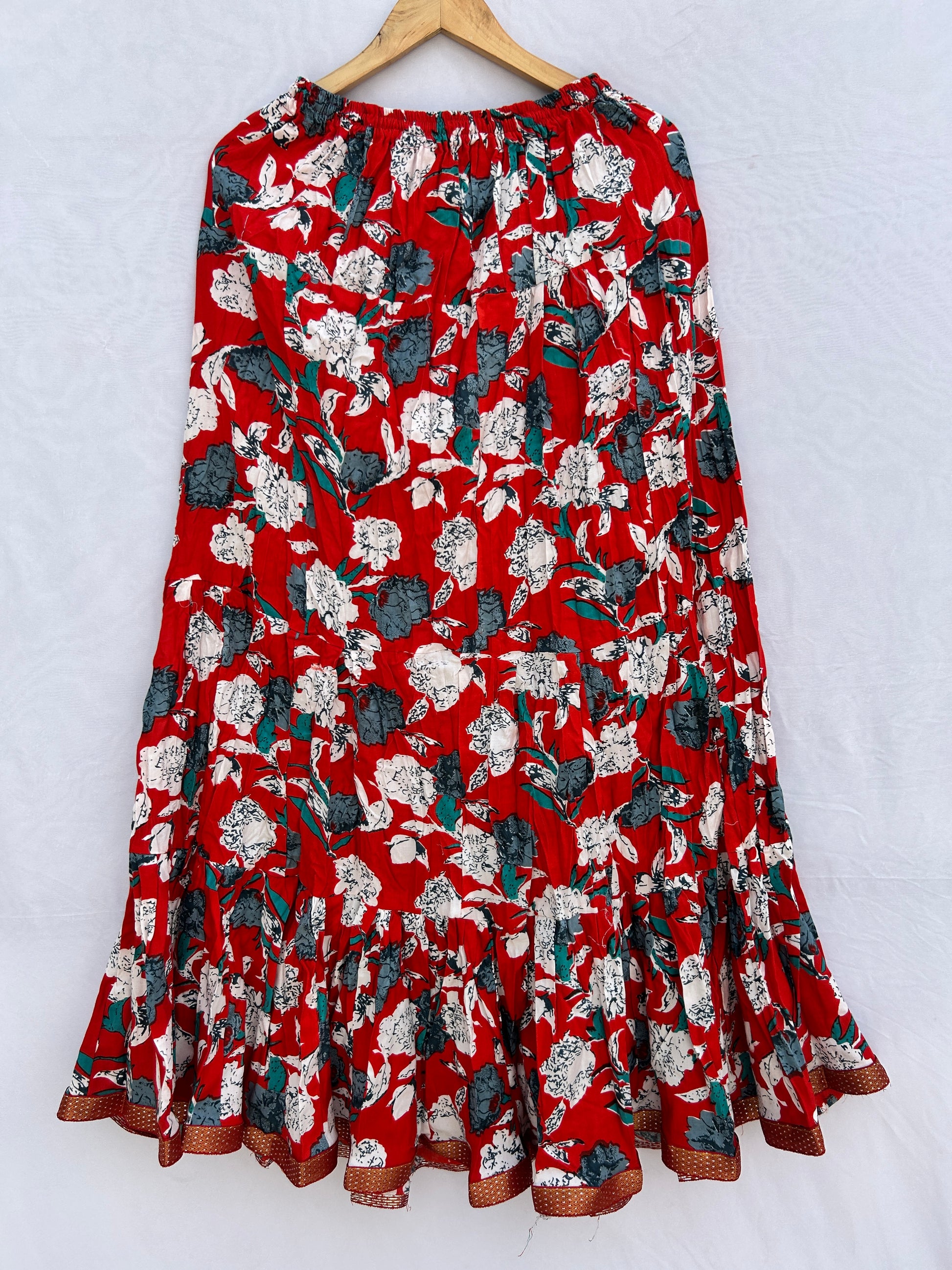 Red floral cute floral printed skirt