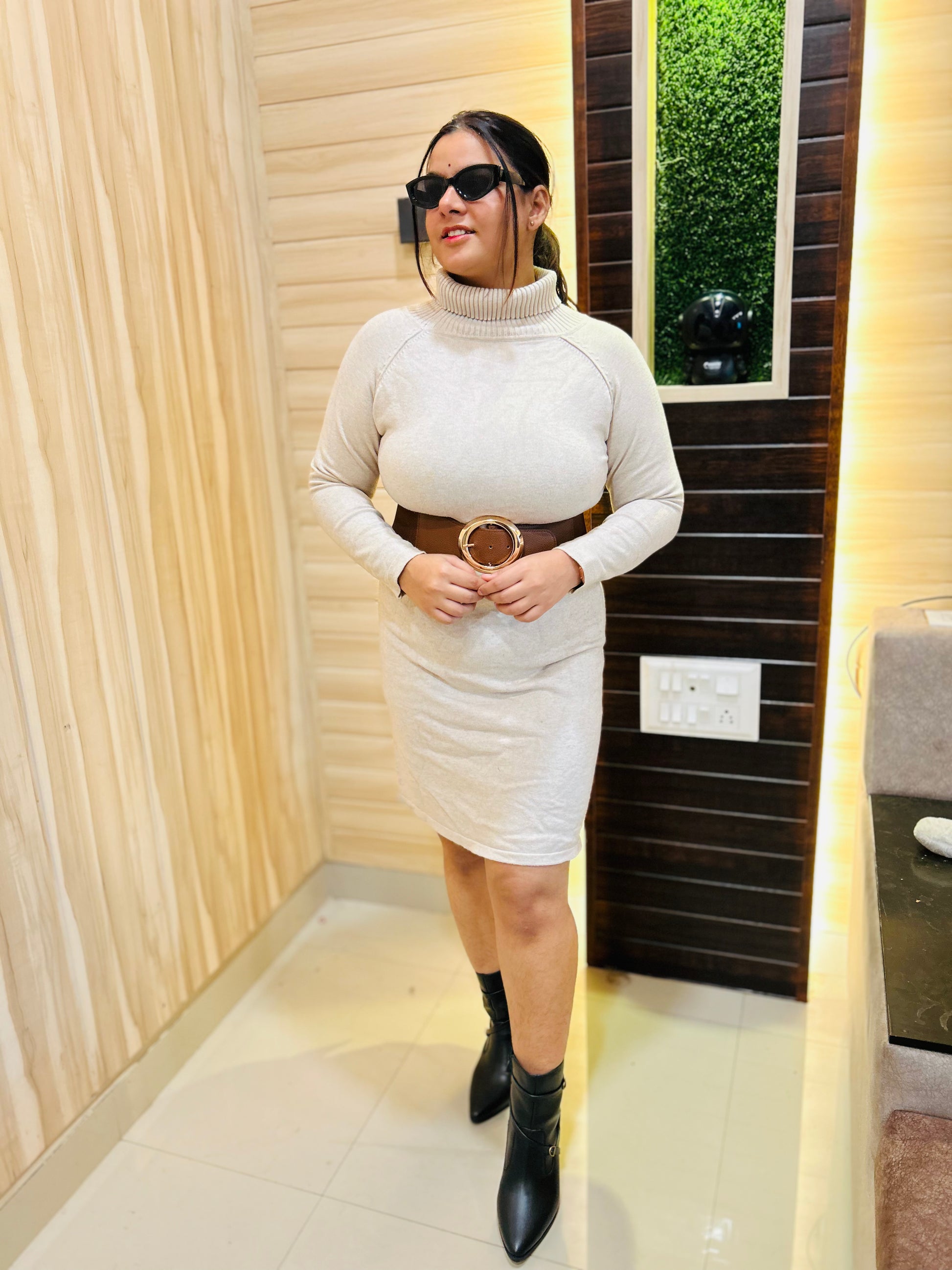 Off White Ribbed Dress for Women | Boho Freesize Surplus Dress