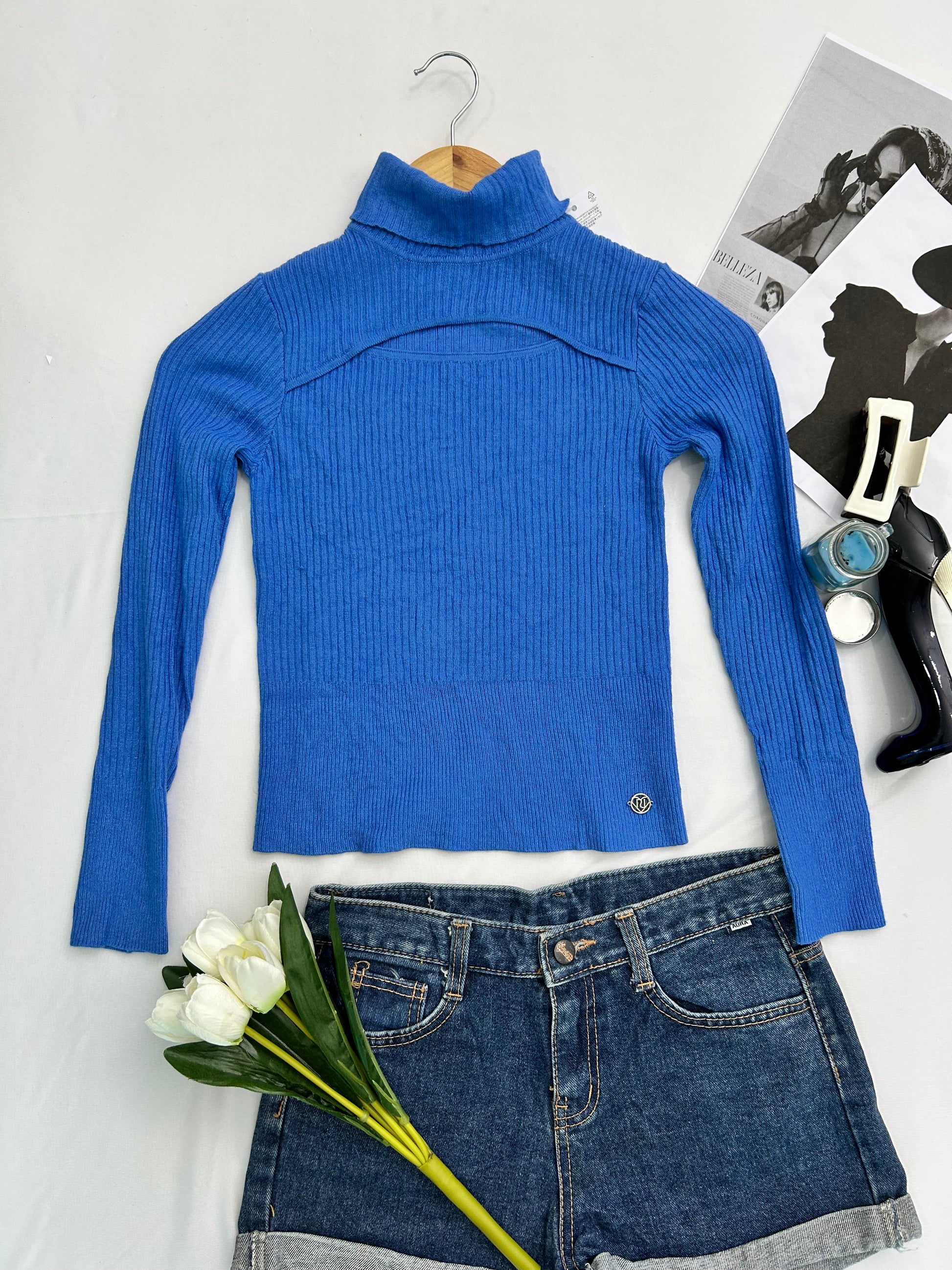 High neck rblue top