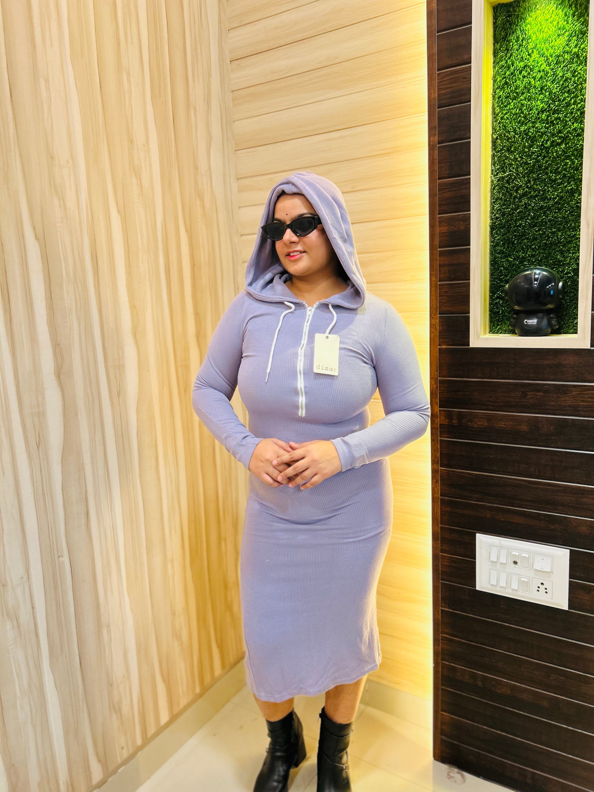 Lavender Zipper Hoodie Dress for Women | Boho Freesize Surplus Dress