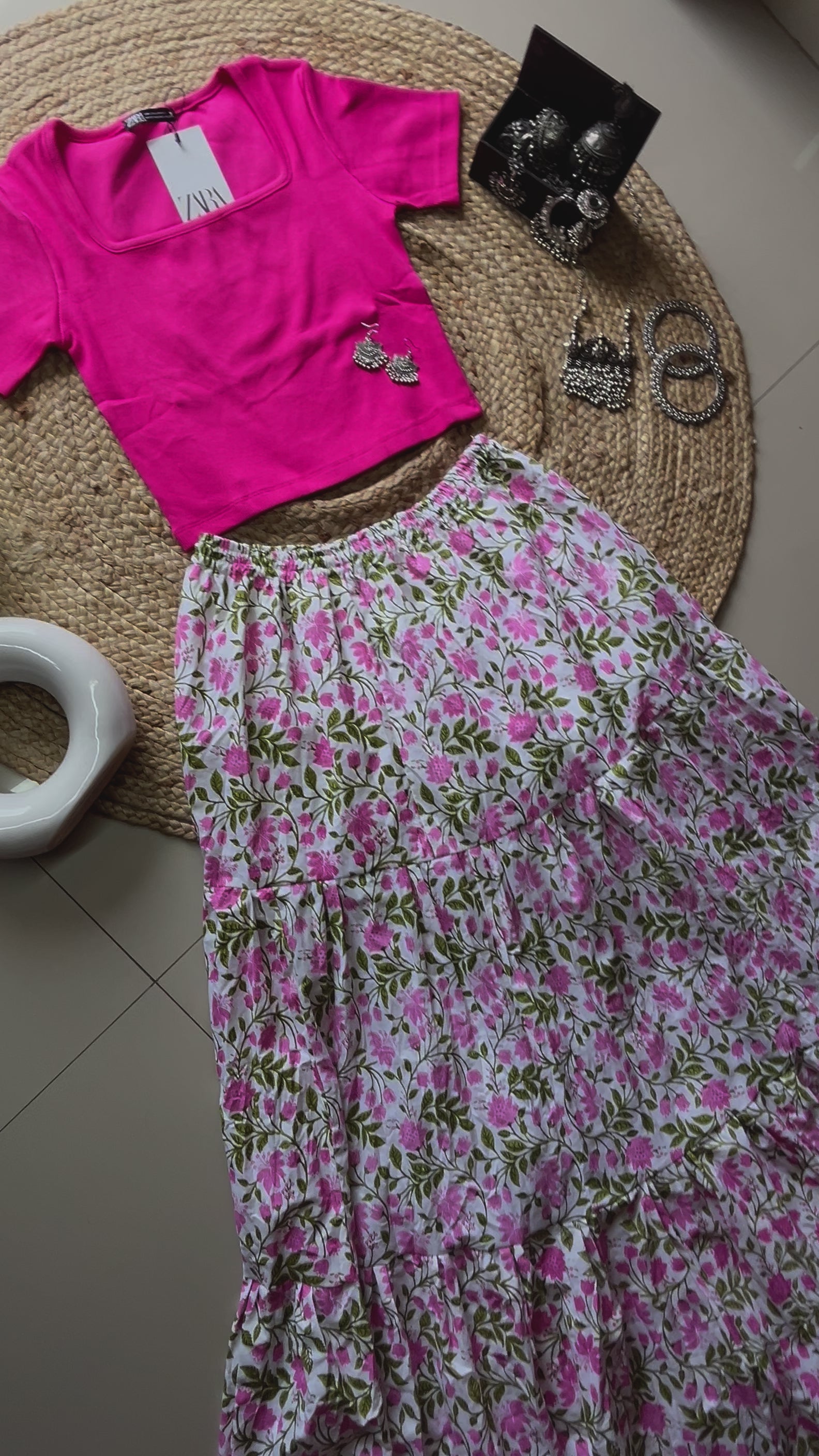 Material : Cotton/Rayon (has lining inside non transparent )
