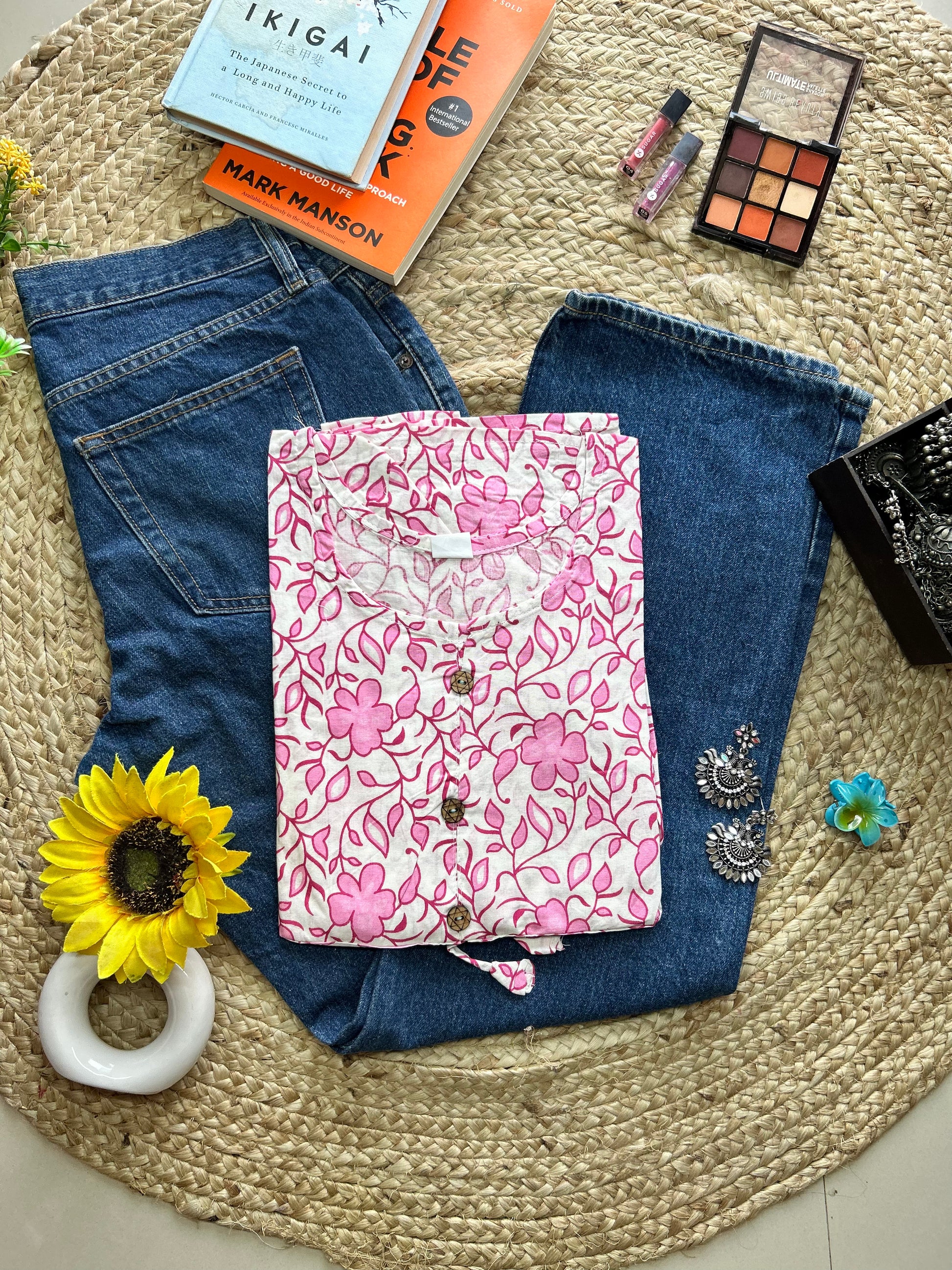 Material: 100% Cotton ;Sleeves:3/4th sleeves; Flared & comfort fit